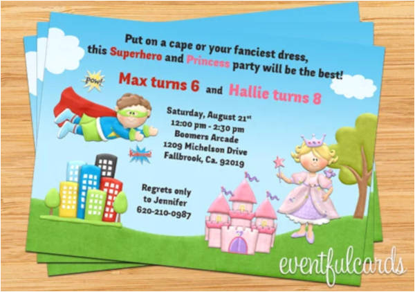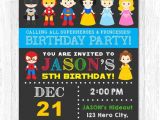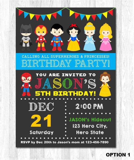 superhero and princess invitation superhero and by kidzparty from Princess And Superhero Party Invitation Template