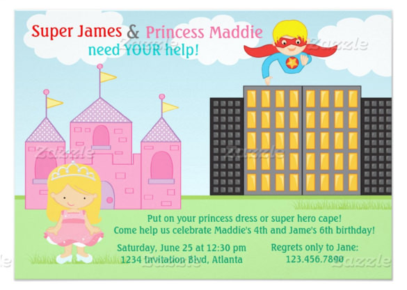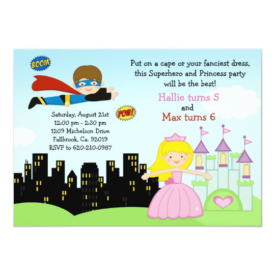 superhero and princess birthday party invitation zazzle com from Princess And Superhero Party Invitation Template