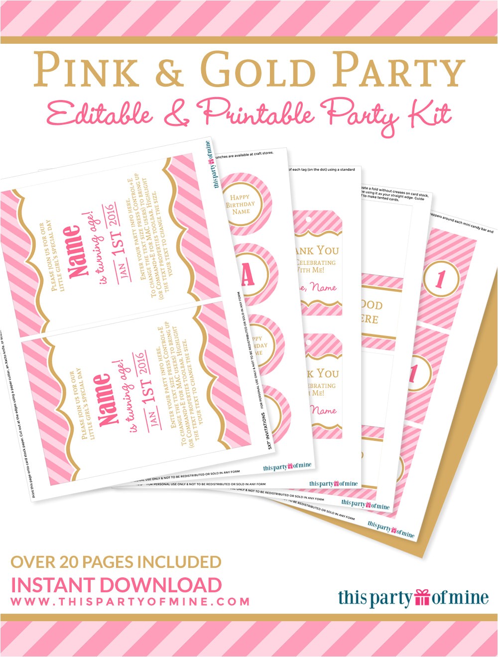 pink and gold party invitation decorations kit printable from printable birthday invitation kits