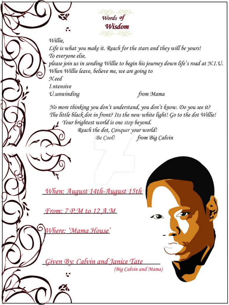 You can personalize your party invitation in a variety of ways. You can go to embellishments such as crystals, flowers and beads. You can after that spice going on your card by using fun, patterned paper. Use every other font styles and colors to make the text stand out. To go to an extra special be adjacent to to your invite, declare adjunct a photo.