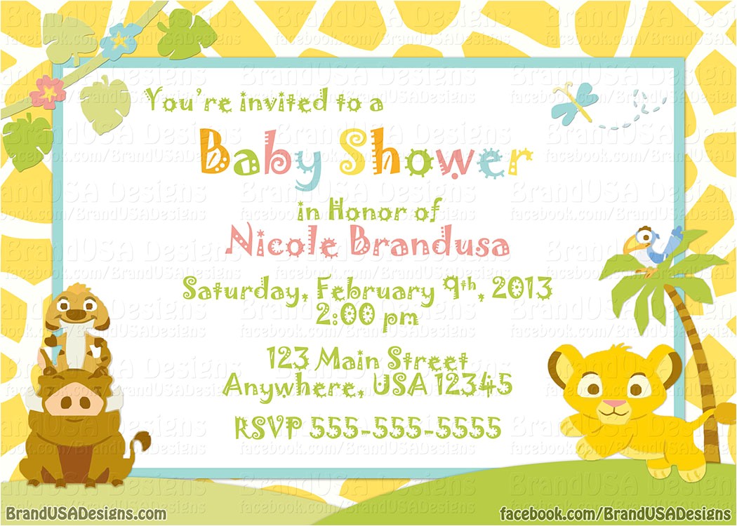 printable lion king baby shower invitations sample: