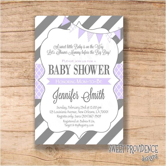 Baby Shower Invitation Unique Purple and Gray Baby Shower from purple and gray baby shower invitations