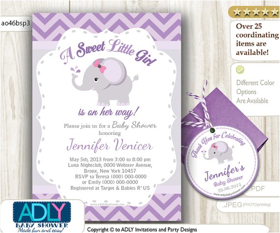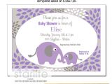 Elephant Baby Shower Invitation Purple Pink Gray from purple and gray baby shower invitations