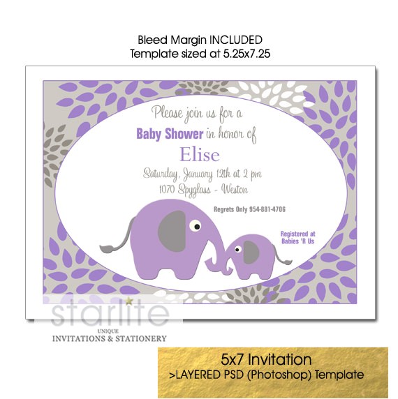 Grey Purple Elephant Invitation Baby Shower Printable DIY from purple and gray baby shower invitations