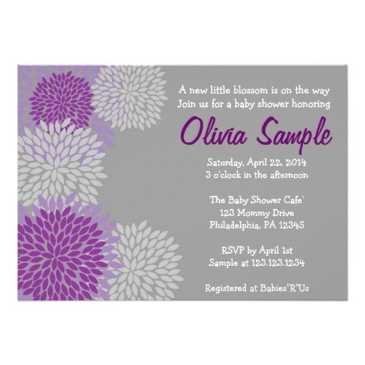 Purple and Grey Dahlia Baby Shower Invitation from purple and gray baby shower invitations