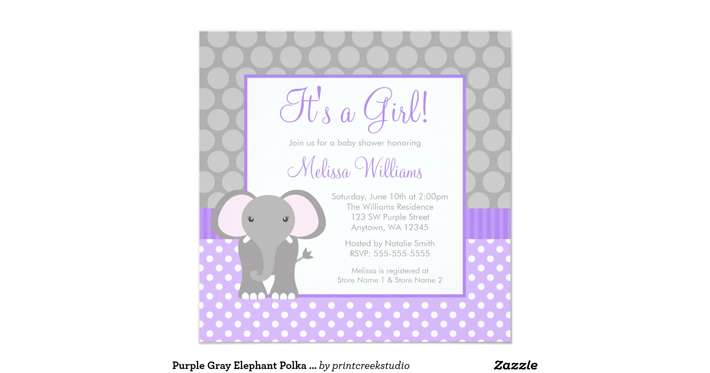 Purple and Gray Baby Shower Invitations Purple Gray Elephant Polka Dot Girl Baby Shower Invitation