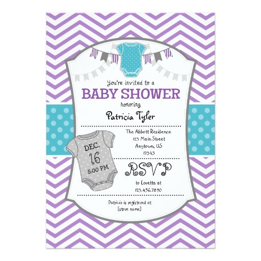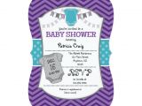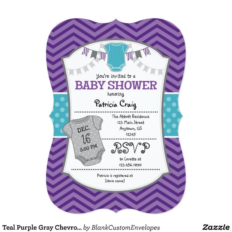 Teal Purple Gray Chevron Baby Shower Invitation from purple and gray baby shower invitations