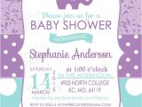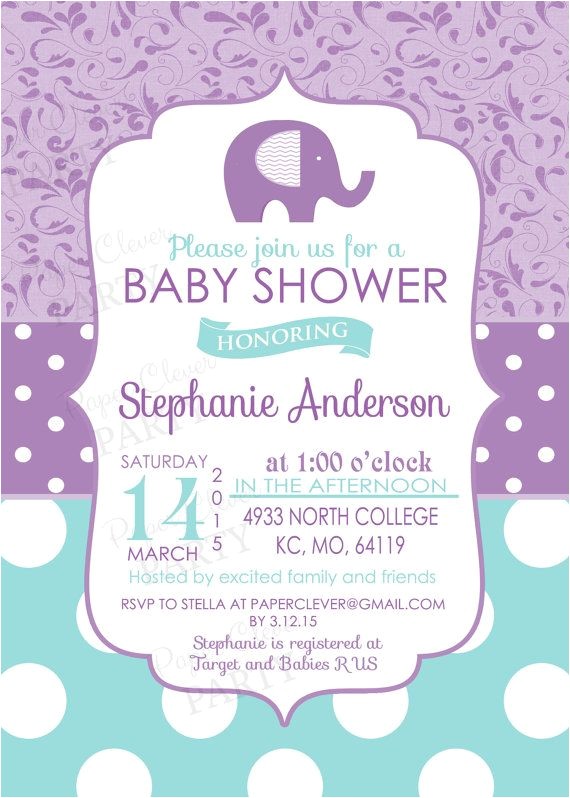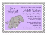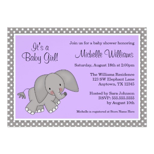 purple and gray elephant baby shower invitations sample: