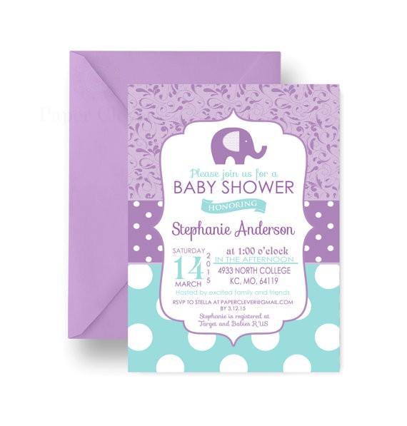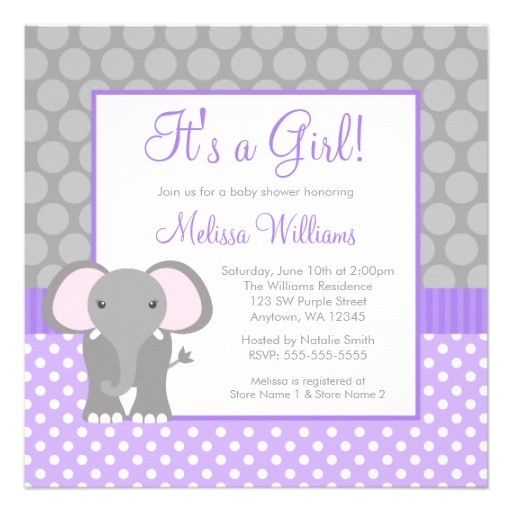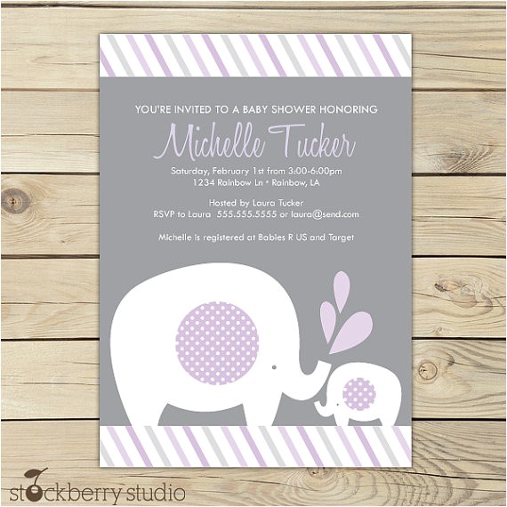 Elephant Baby Shower Invitations from purple and gray elephant baby shower invitations