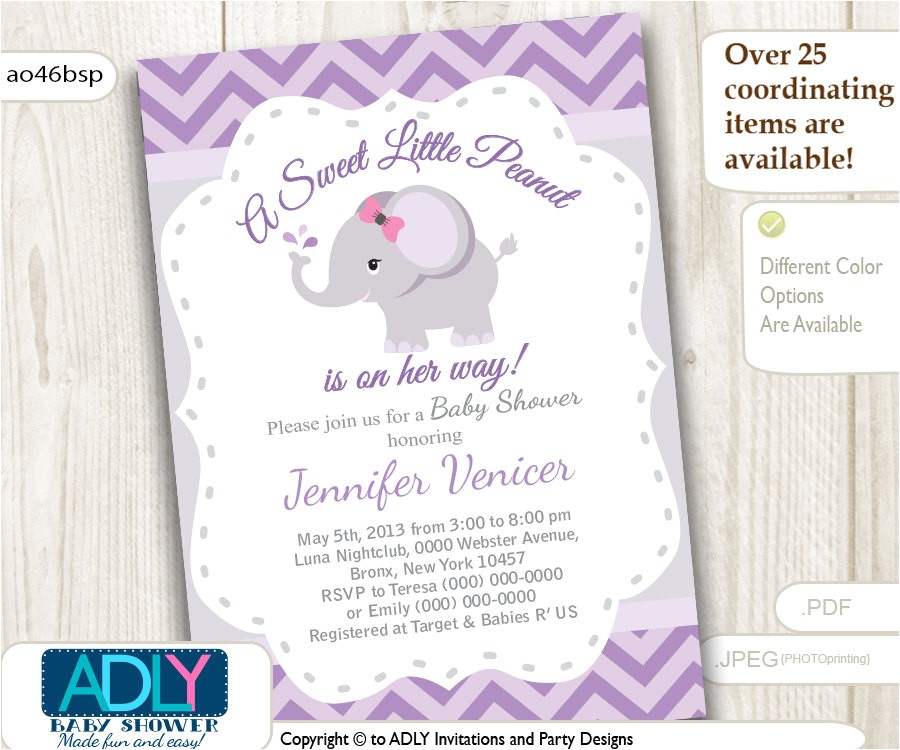 Purple Grey Elephant invitation for baby shower Little Peanut from purple and gray elephant baby shower invitations