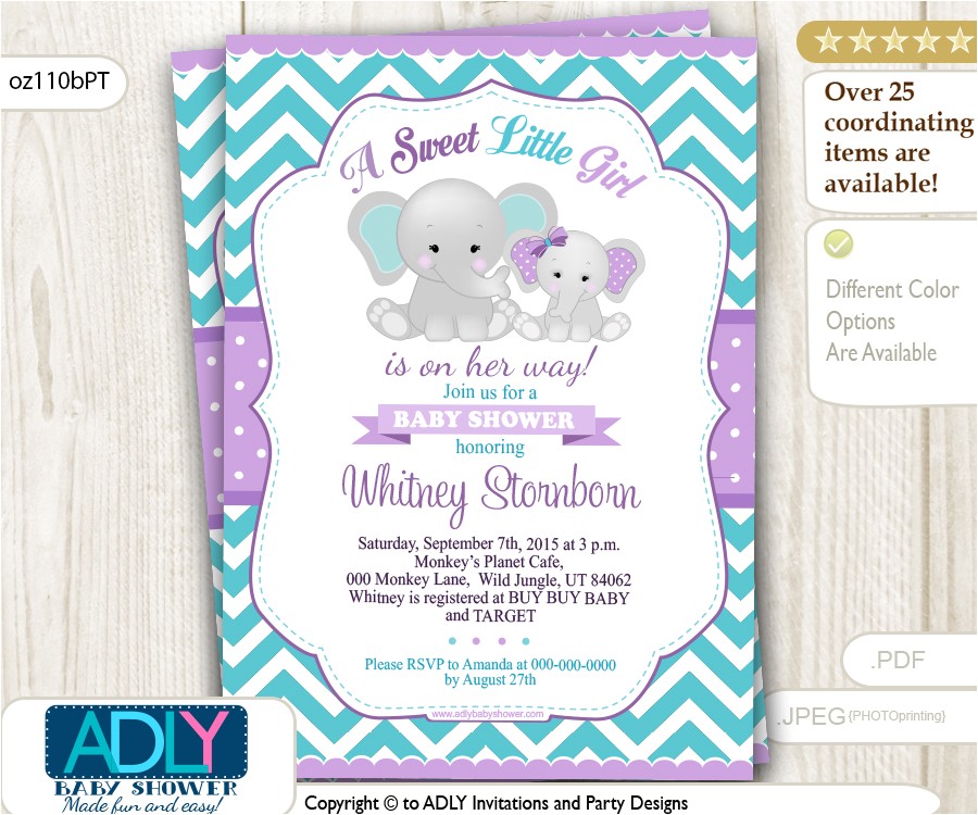 Purple Teal Grey Girl Elephant And Mommy Baby Shower Invi from purple and gray elephant baby shower invitations