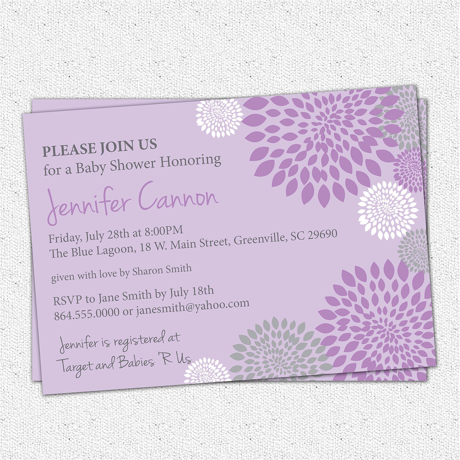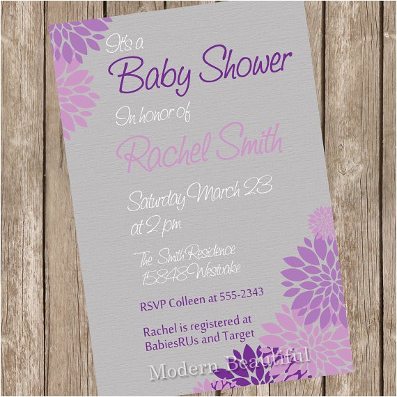 Neutral Baby Shower Invitation Purple and Grey Flower from purple and grey baby shower invitations