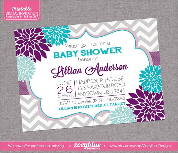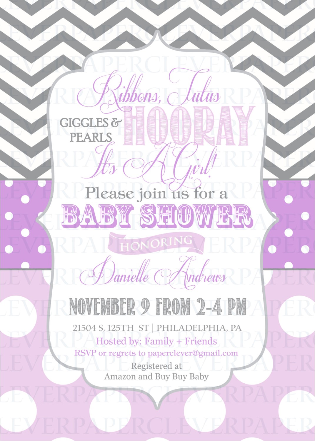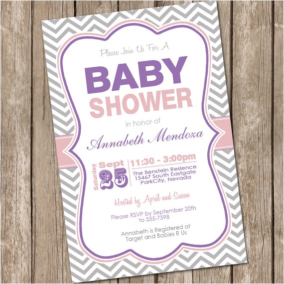 Girl Baby Shower Invitation Purple and Grey Chevron printable from purple and grey baby shower invitations