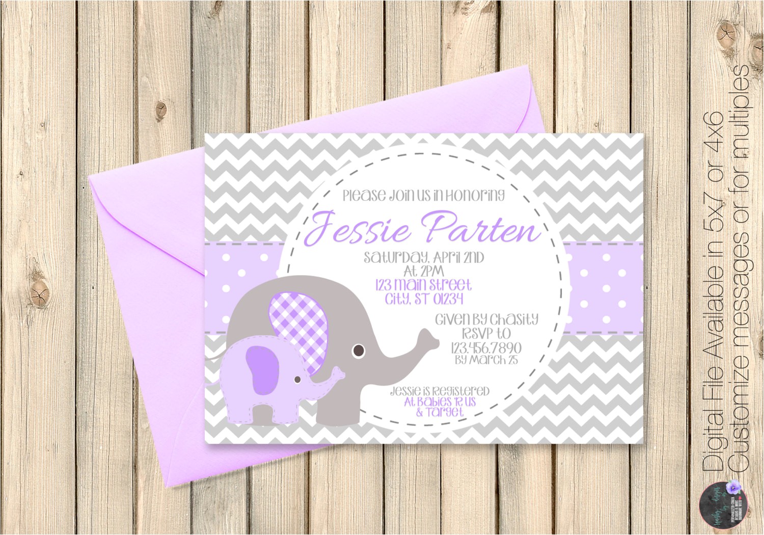 Purple and Grey Elephant Baby Shower Invitation Purple from purple and grey baby shower invitations