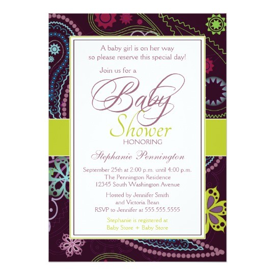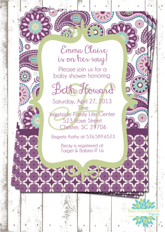 Purple lime floral paisley baby shower invitation from purple paisley baby shower invitations