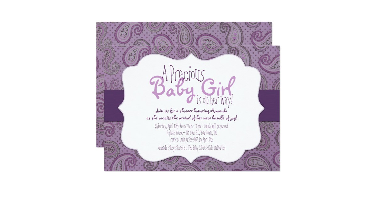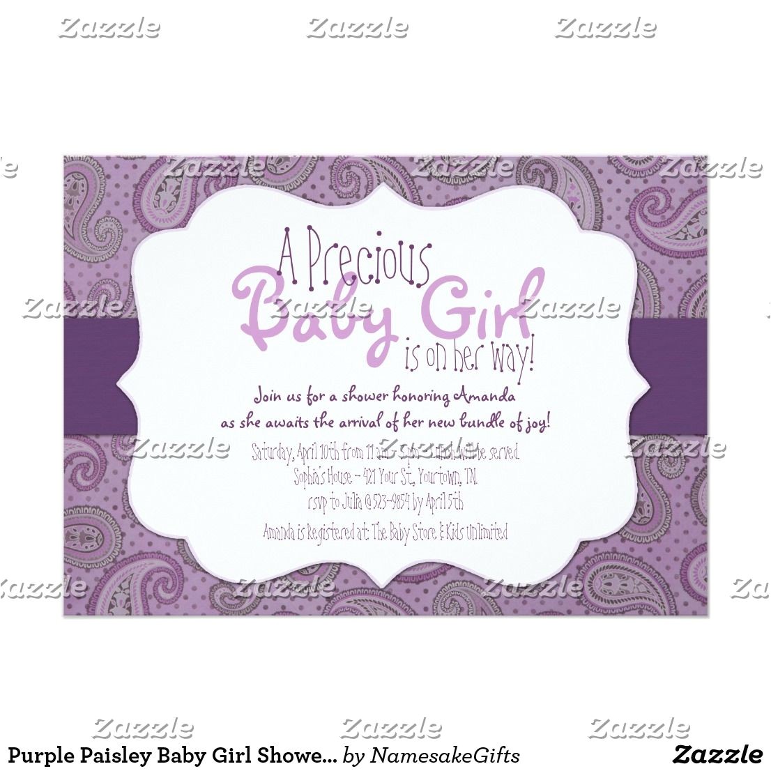 Purple Paisley Baby Girl Shower Invitation from purple paisley baby shower invitations