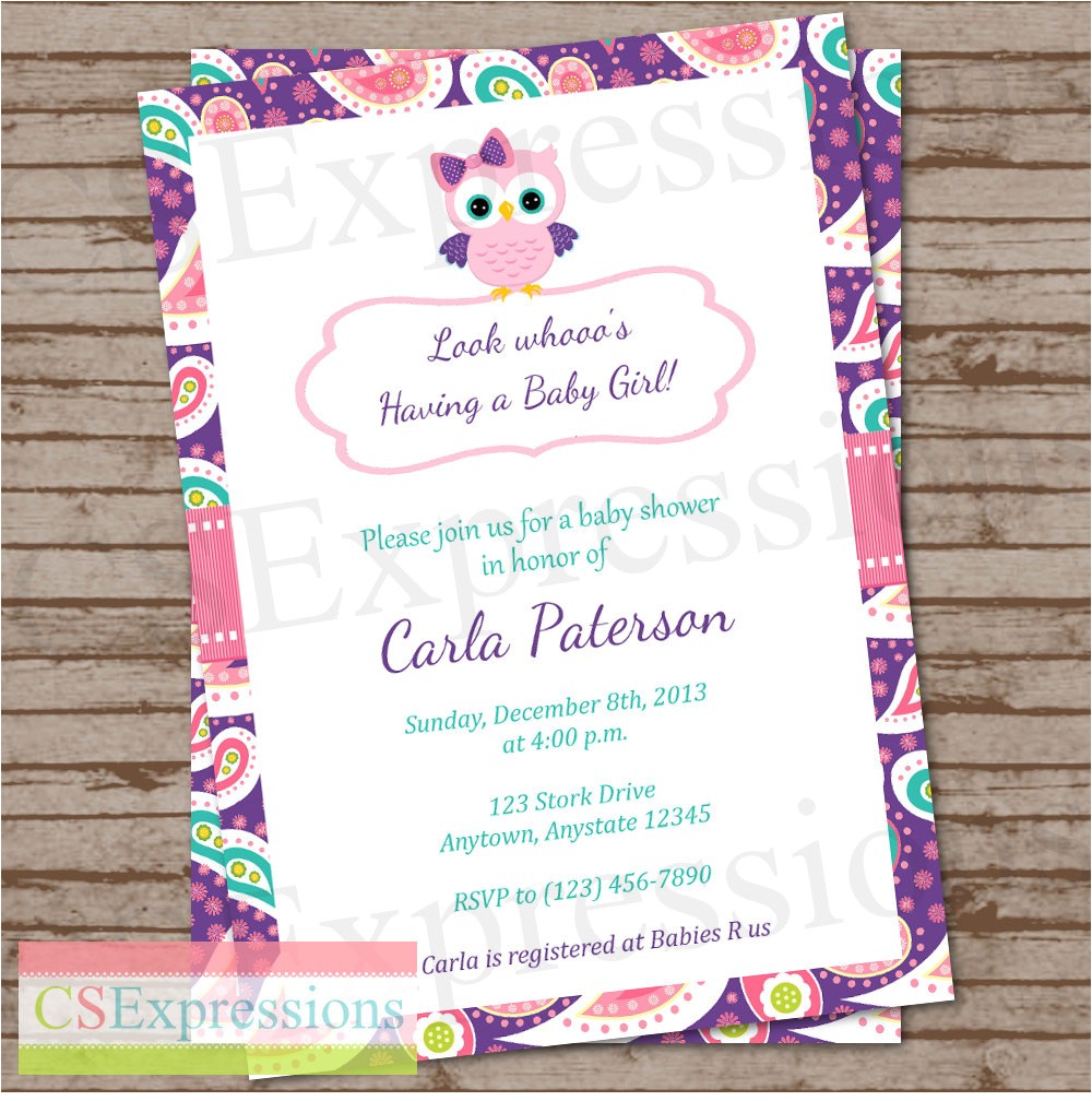 Purple Paisley Owl Baby Shower Invitation from purple paisley baby shower invitations