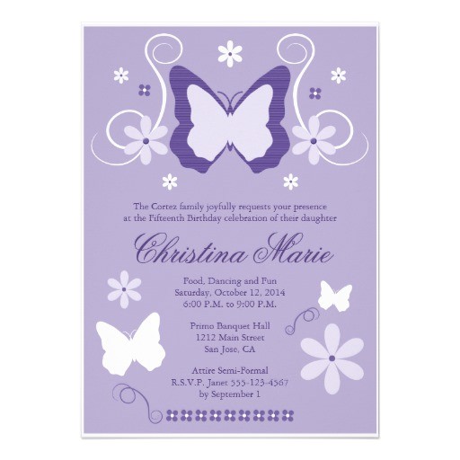 quinceanera invitations butterfly theme sample:
