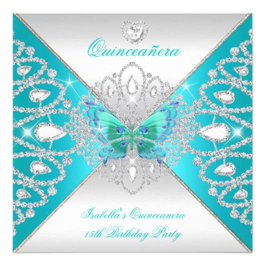 quinceanera teal blue white butterfly diamond 5 25 quot square from quinceanera invitations butterfly theme