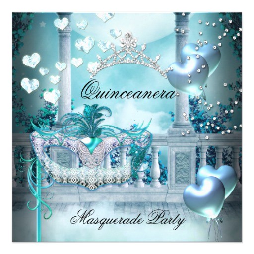 masquerade quinceanera 15 teal birthday party 5 25×5 25 from quinceanera invitations masquerade theme