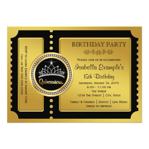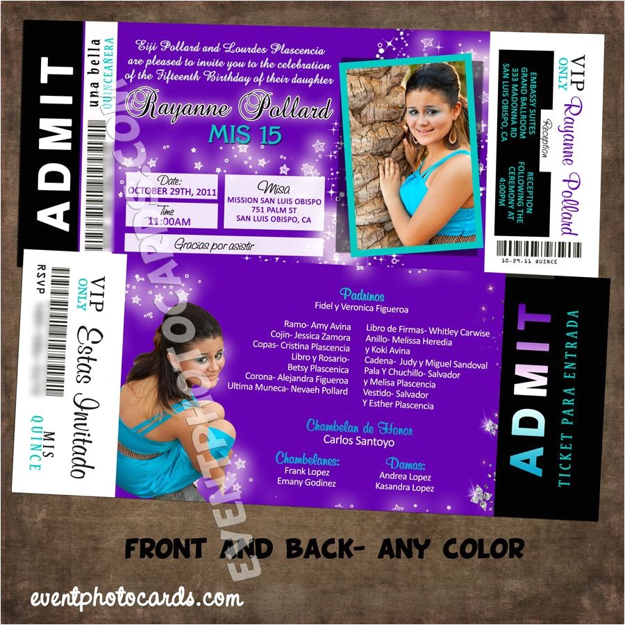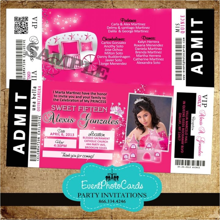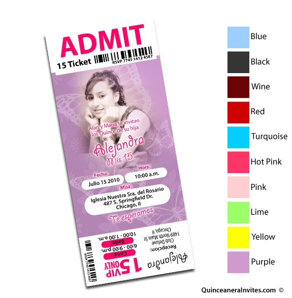 quinceanera ticket invitations sample: