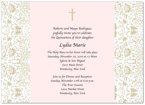 This is the most used verse for your quinceanera invitations . in view of that option question that girls have is, realize we put the two last names? Many quinceaneras just put one, but it is taking place to you and your parents. on some invitations even the last broadcast is left out, therefore basically everything goes.