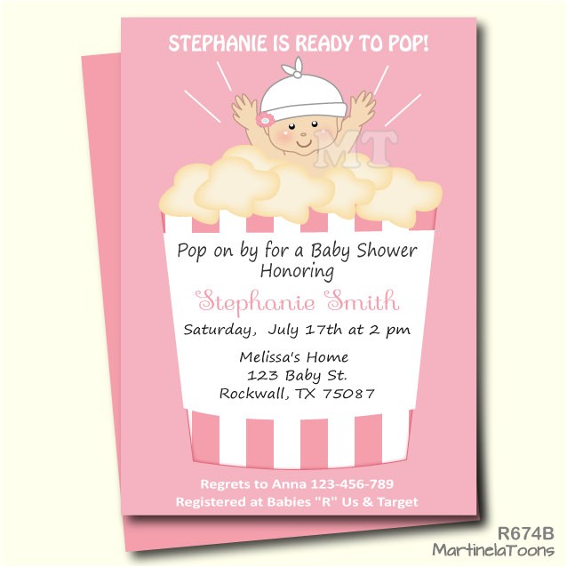 Ready to Pop Baby Shower Invitation Cute Popcorn Babyshower from ready to pop baby shower invites