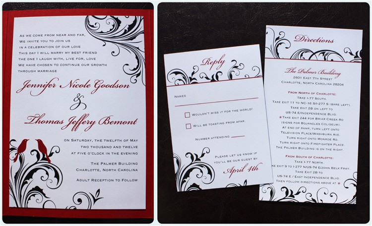 red and black wedding invitations cheap sample: