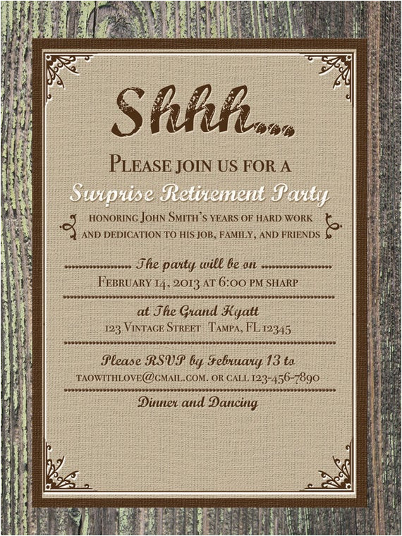 printable burlap vintage invitation retirement birthday or from Retirement Party Invitation Letter Template