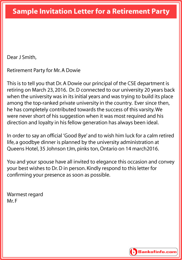 Retirement Party Invitation Letter Template – Delightful for you to our website, on this time I’m going to demonstrate about Retirement Party Invitation Letter Template. And today, this can be a very first sample picture: