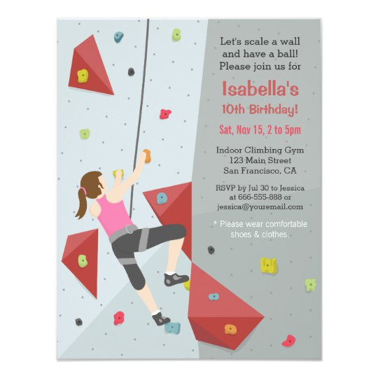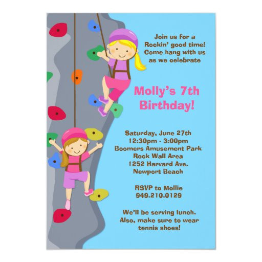rock wall climbing girls birthday party invitation by from Rock Climbing Party Invitation Template Free