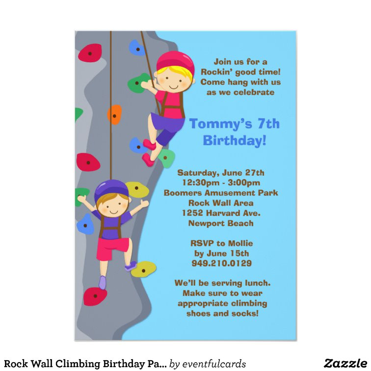 rock wall climbing birthday party invitation zazzle from Rock Climbing Party Invitation Template Free