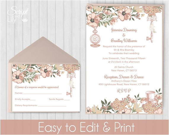 blush rose gold alice in wonderland invitation template free from Rose Gold Birthday Invitation Template Free