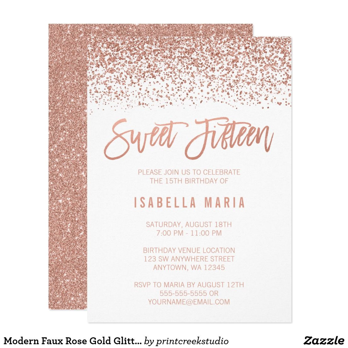 modern faux rose gold glitter sweet 15 birthday invitation from Rose Gold Birthday Invitation Template Free