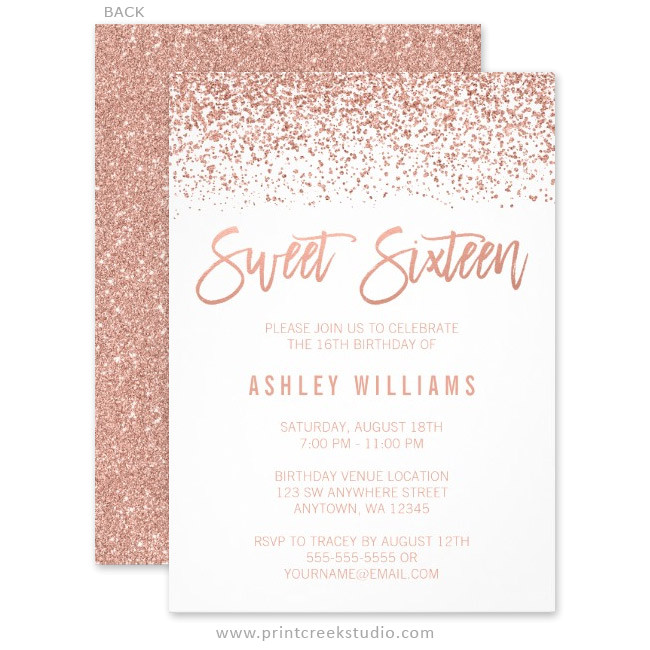 rose gold faux glitter sweet 16 invitations print creek from Rose Gold Birthday Invitation Template Free