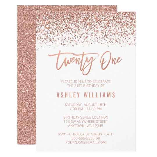 modern rose gold faux glitter 21st birthday invitation from Rose Gold Birthday Invitation Template Free