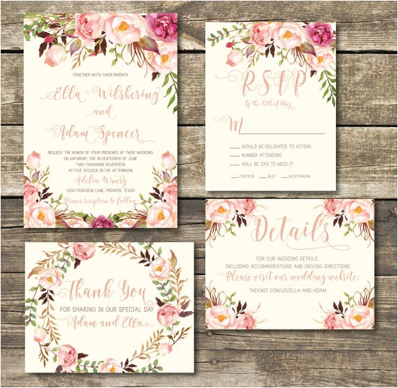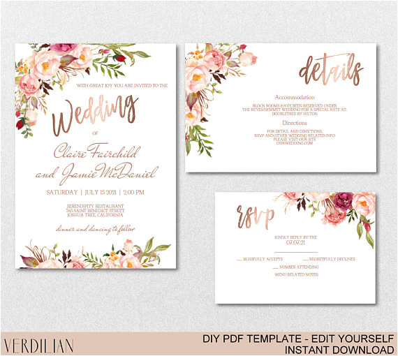 marsala rose gold wedding invitation template set blush from Rose Gold Wedding Invitation Template