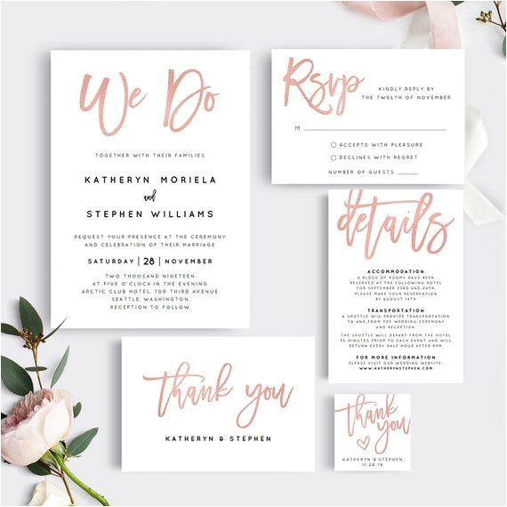 wedding invitation printable template set rose gold foil from Rose Gold Wedding Invitation Template