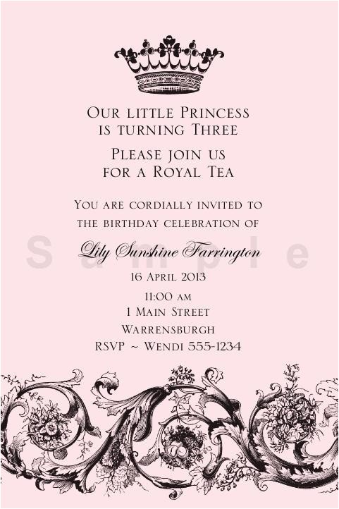 elegant personalized royal princess party invitation tea from royal tea party invitation wording