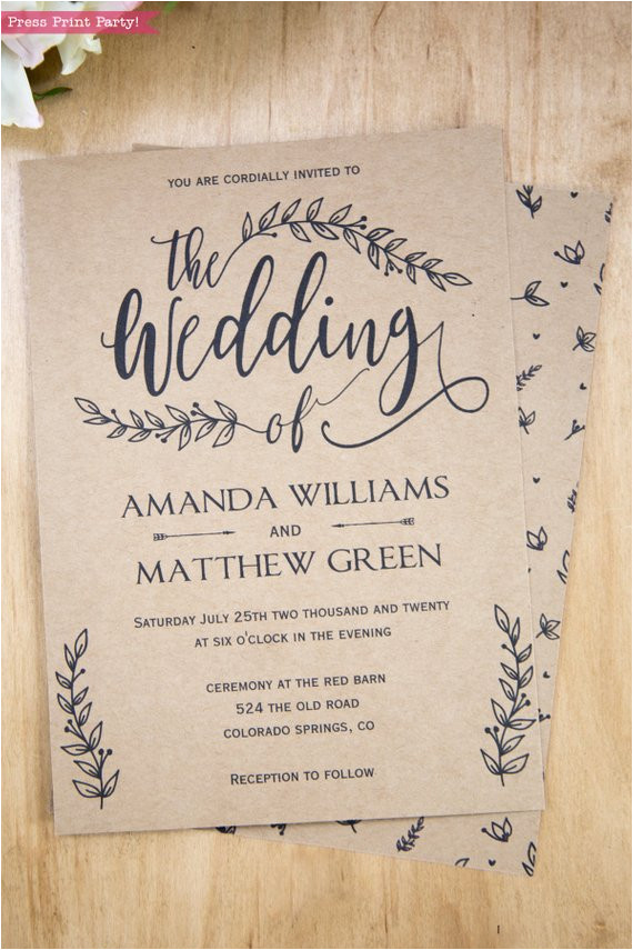 rustic wedding invitation printable leaf design decor from Rustic Wedding Invitation Template Free