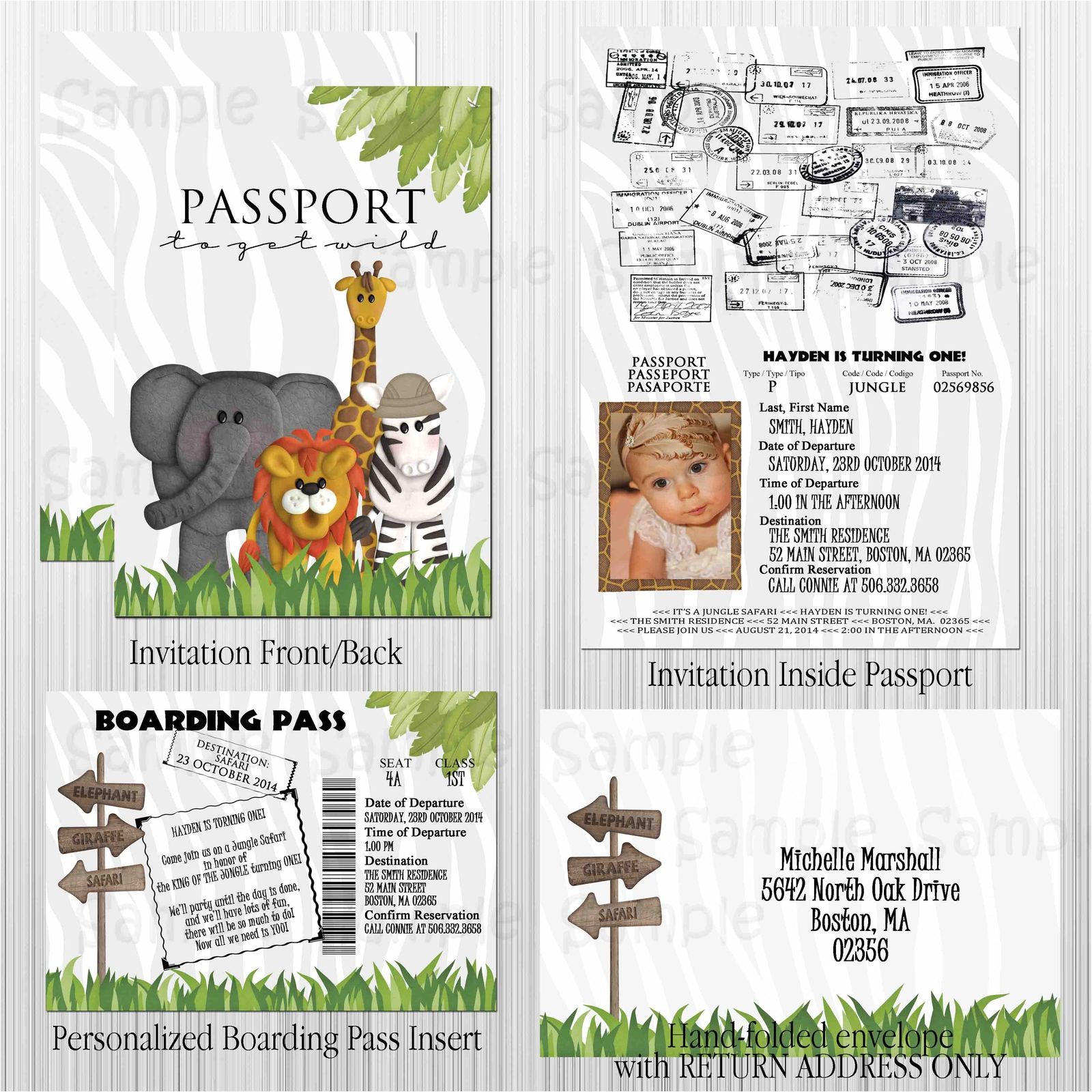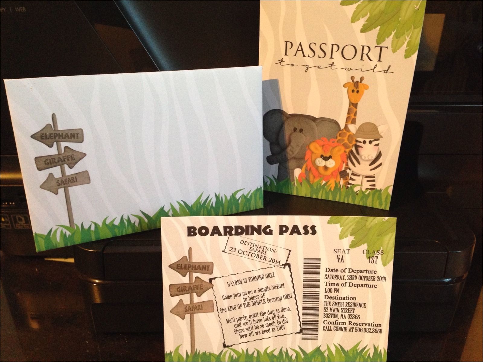 Jungle Safari Passport Boarding Pass Invitation Set from safari passport baby shower invitations