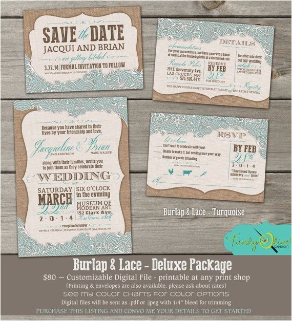 teal burlap wedding invitation package save the date from save the date and wedding invitation packages