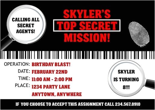 secret agent spy birthday party invitation customized from secret agent party invitations free