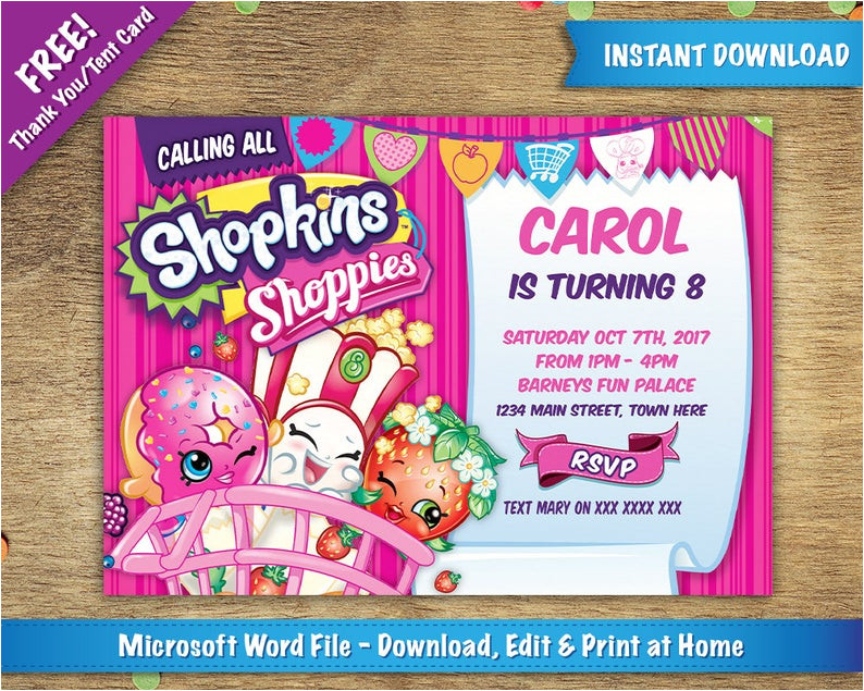 shopkins invitations shopkins birthday party invitation from Shopkins Birthday Invitation Template Free