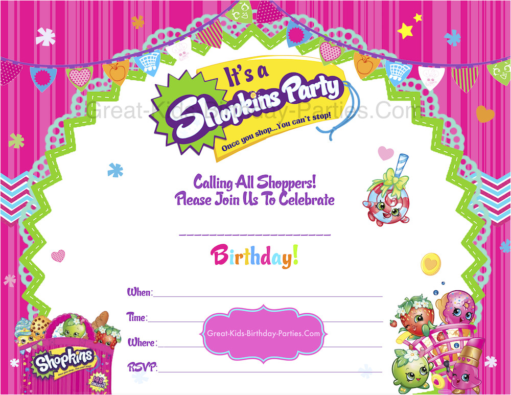 shopkins birthday party shopkins party printable from Shopkins Birthday Invitation Template Free
