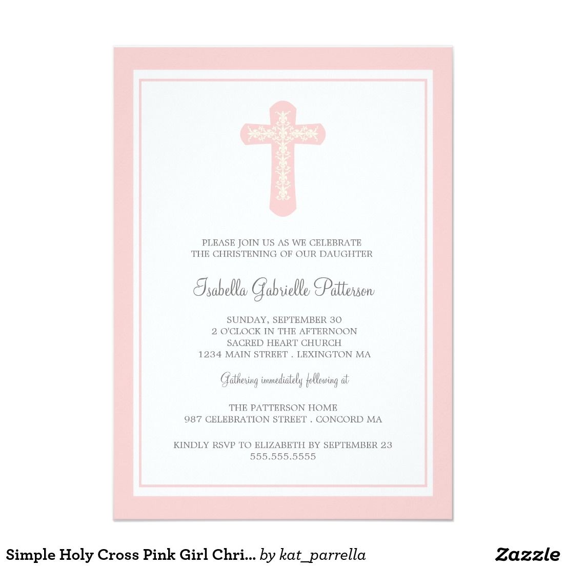 Simple Holy Cross Pink Girl Christening Invitation from simple girl baptism invitations