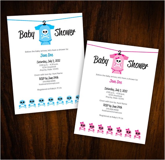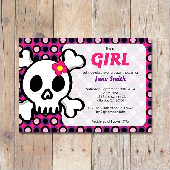 Skull Baby Shower Invitation rocker invite from skull baby shower invitations