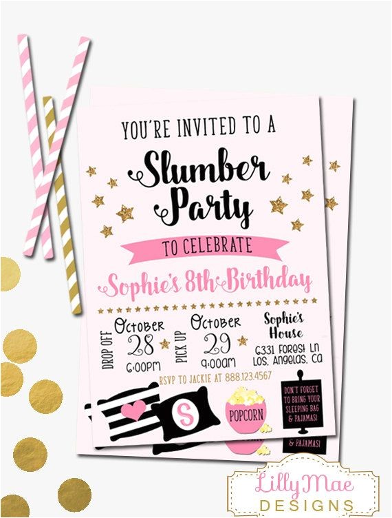 Slumber Party Invitations for Adults Slumber Party Invitation Girls Slumber Party Invitations
