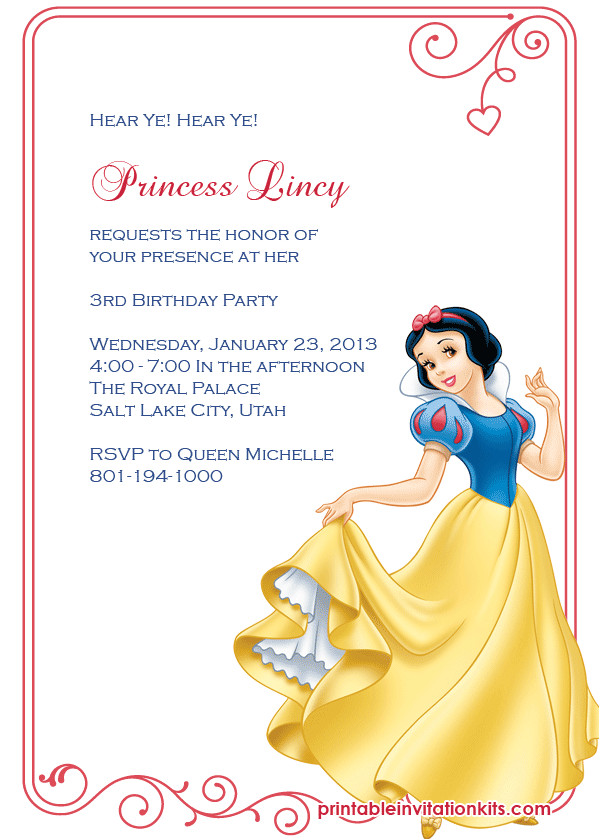 snow white princess birthday invitation wedding from Snow White Birthday Invitation Template