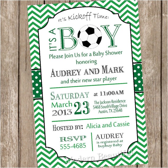 Chevron soccer baby shower invitation soccer green from soccer baby shower invitations